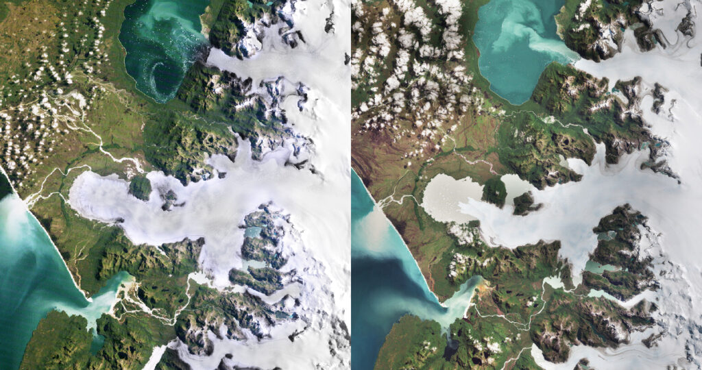 “Ambos glaciares han estado retrocediendo drásticamente debido al calentamiento global“, afirmó la ESA.